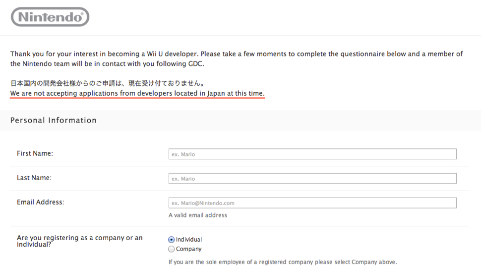 Meanwhile, Nintendo has been telling indie developers in their own country to not bother.