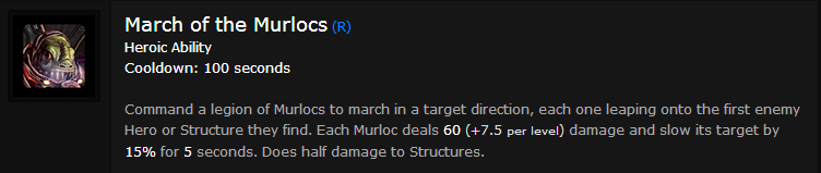 In the case of Murky, one Ultimate is clearly better than the other. Alas, the mantle of Superior Ultimate does not belong to March of the Murlocs. This ability serves a few uses, including pushing against turrets or trapping enemies in a team fight. However, those few uses and the ability’s insanely long cooldown don’t merit a choice over Murky’s other, far superior Ultimate.