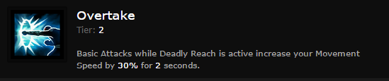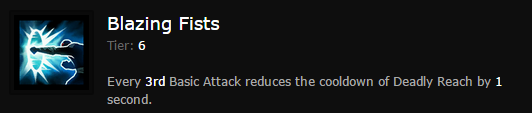 One of the biggest flaws of Deadly Reach is using it to attack a mobile target. In most cases, an enemy Hero can literally walk away from Monk, thus stopping the attack. If you’re not in an area where you can Radiant Dash to a target that allows you to attack with the full duration of Deadly Reach, taking Overtake will not only help get the most out of your barrage, but also provide a burst in speed for the purposes of retreat. This is the talent to take if you’re going with an Iron Fist build.