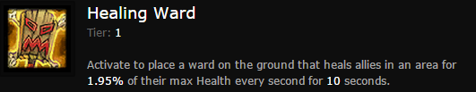 Healing Ward has really been put through the wringer when it comes to nerfs. Once a staple choice for each and every healer, the totem is now relagated to an “Eh.” pick. While Ward is probably more useful as a team pick-me-up before or after a team fight, away from any potential enemy that can snipe it before the full 10 seconds is up, it does have applications during battle. Dropping the Ward during a tightly packed team fight may be enough to cause distraction to or away from it, potentially saving a team mate from focus fire.