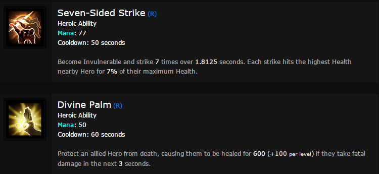 So, which Heroic ability is the right choice? It comes down to a matter of personal preference and confidence in skill, as I find both to be worth choices. Seven-Sided Strike can be great in a team fight because it will allow Monk to stand in the middle of a scrum while dealing damage and avoiding being hit. Likewise, if you catch the enemy tank out of position or in a ganking scenario, Strike can eat around half of their health before they even have a chance to react.