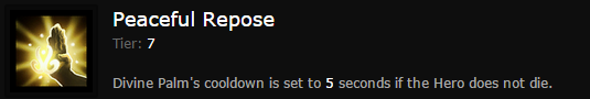 Perhaps the biggest weakness of Breath of Heaven is that it has too many viable Talent choices. Circle of Life is an amazing boost in raw healing numbers if you’re the type of Monk that prefers standing in the middle of the dog pile. The added healing from Circle of Life in straight up 5 v 5 situations can literally turn the tide in a fight and makes the second burst of healing from Echo of Heaven into an amazing Talent choice. If the enemy team is full of bursty damage, Circle of Life is the way to go, and probably the best overall Talent in the Level 16 tier.