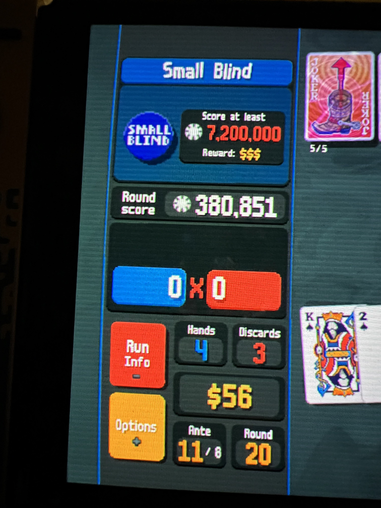 Easy come, easy go. However, that doesn’t make it any easier as you watch great Balatro runs slowly go down the drain. Worse yet, the player is made complicit in this, as they continue to discard cards, play terrible hands, and hope for just one small shot at redemption. The game forces the player to be the one to end it all, as you watch your inability to meet that required score end tens of minutes of hard work.